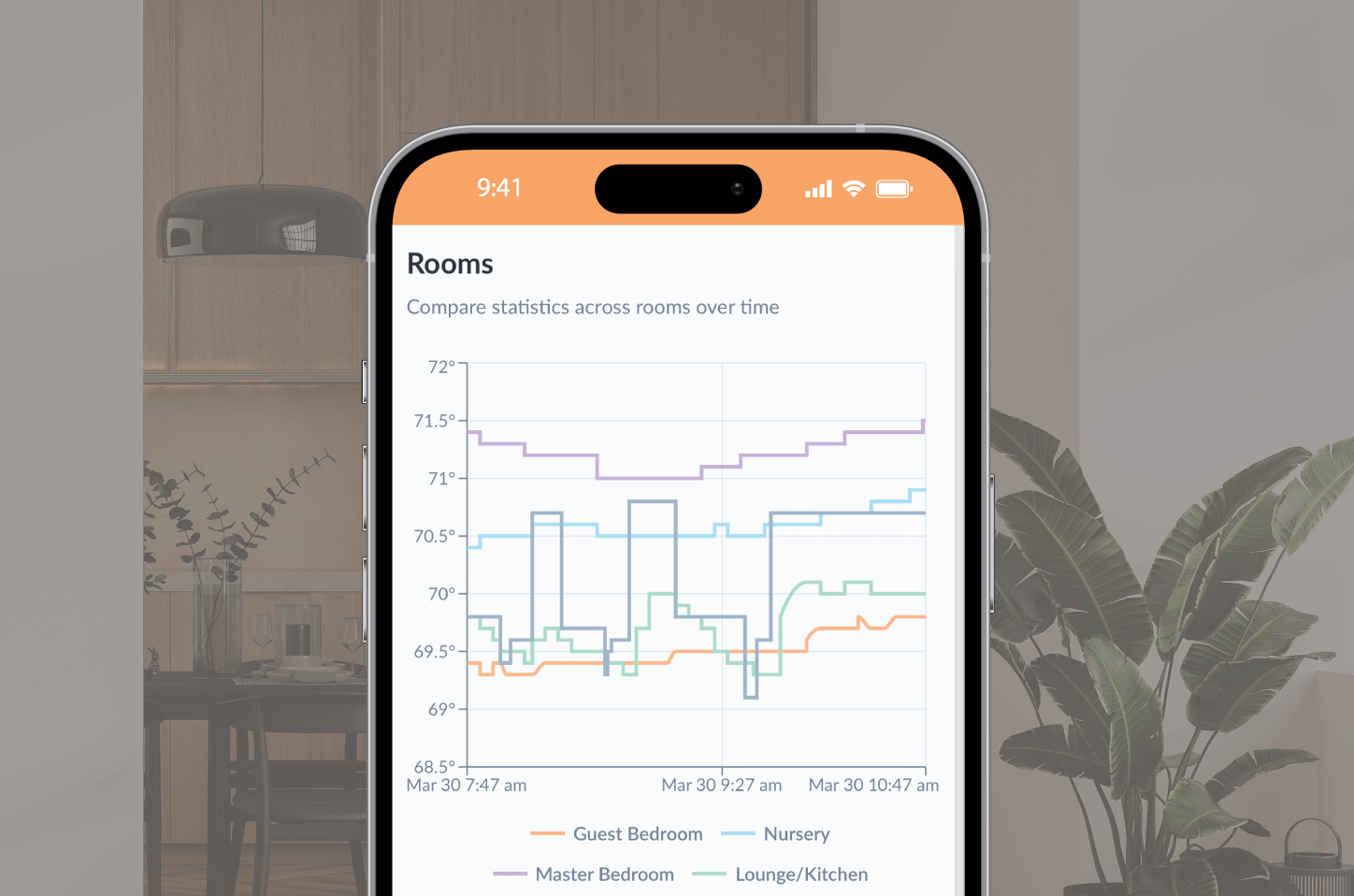 Track how your home performs over time. Compare room temperature, humidity, and set point across rooms to understand comfort patterns, spot imbalances, and better understand how your HVAC system is operating.