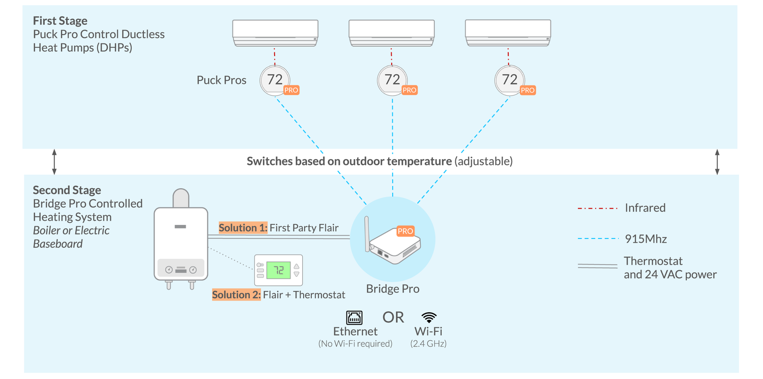 Pair the Puck Pro with the Bridge Pro to manage the second stage of Staged Heating. The Bridge Pro ensures: